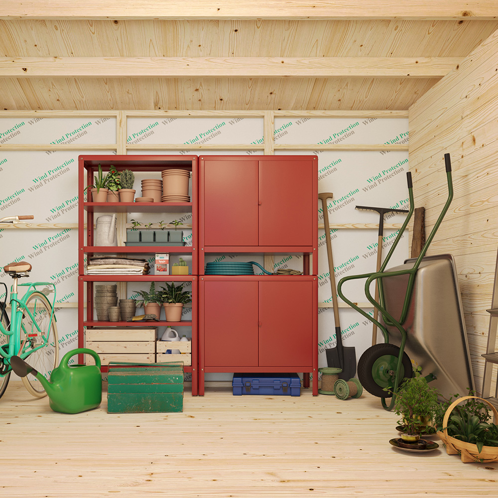 Boden er ubehandlet og må grunnes og males før bruk. Den leveres i byggesett som du selv monterer med hjelp av monteringsanvisninger. Det anbefales at boden plasseres på et fundament som er gravd ned til frostfri dybde.