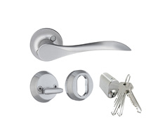 Ytterdøren leveres med terskel, dørkarm og hengsler. I dørbladet er det montert en låskasse.