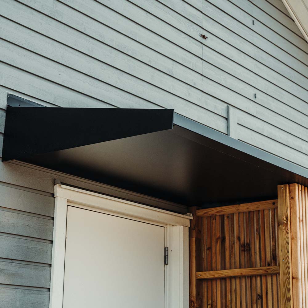 For å få inngangen til hjemmet ditt som du ønsker, kan du velge mellom flere farger på takets metallplate. Match gjerne med taket på ditt eget hus. Du kan også velge farge på undersiden av entrétaket; det samme som på toppen eller fargen antikkhvit.