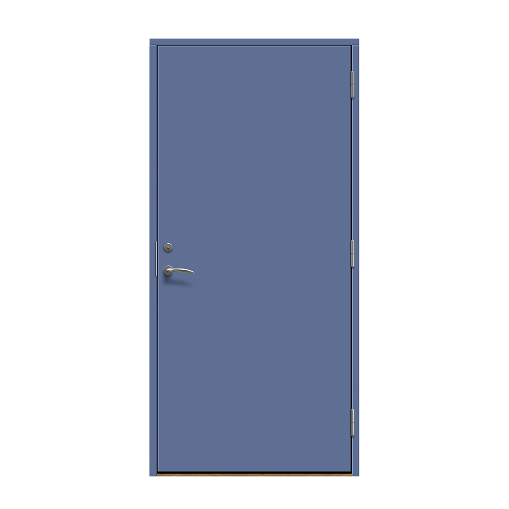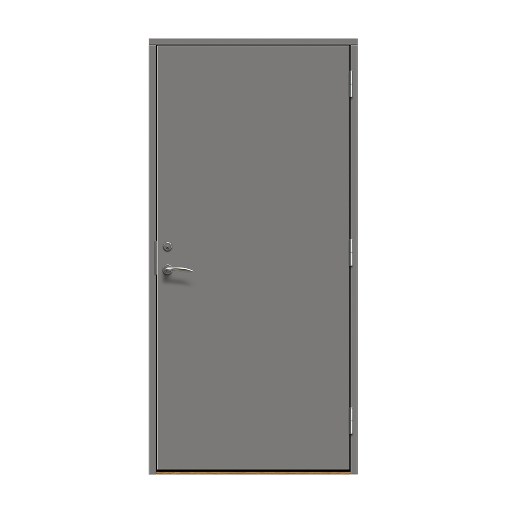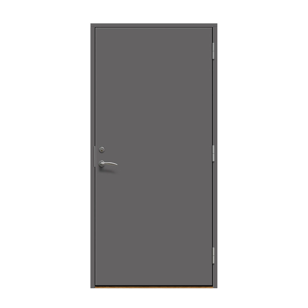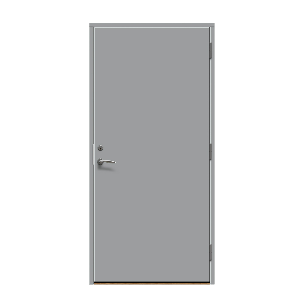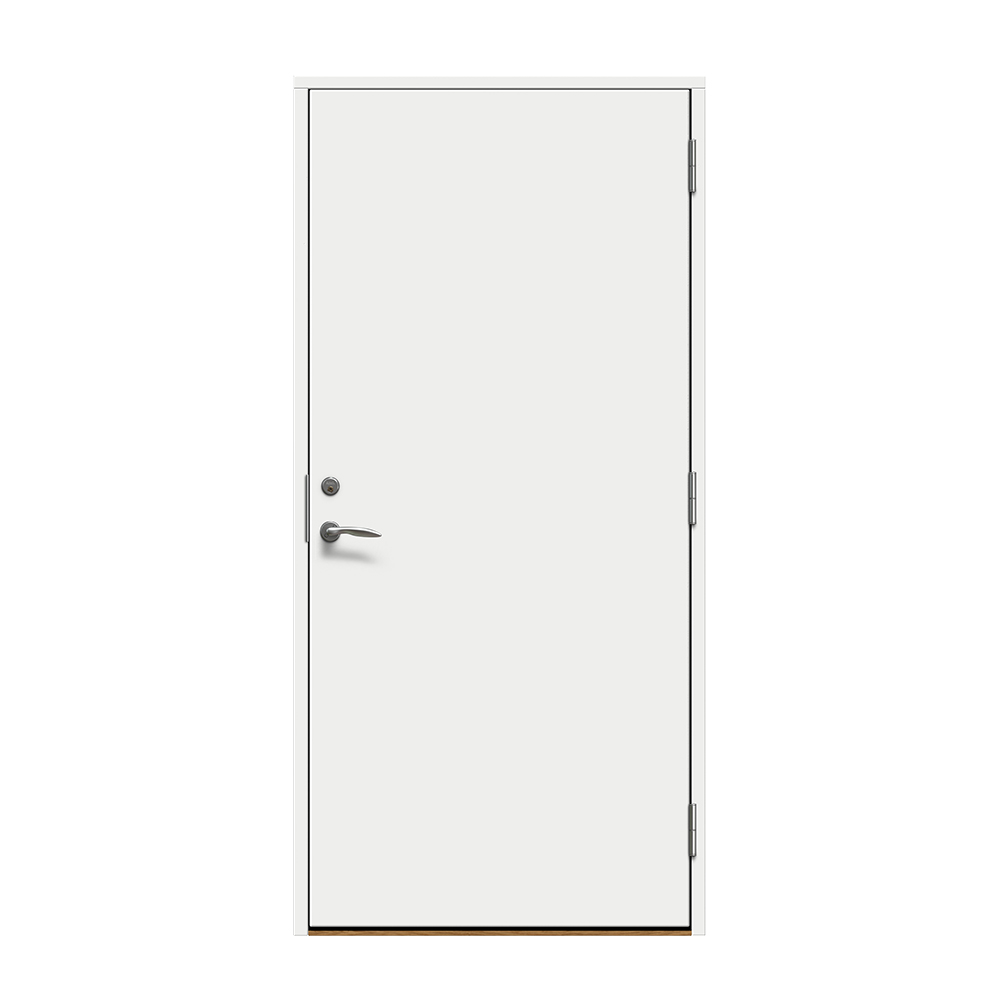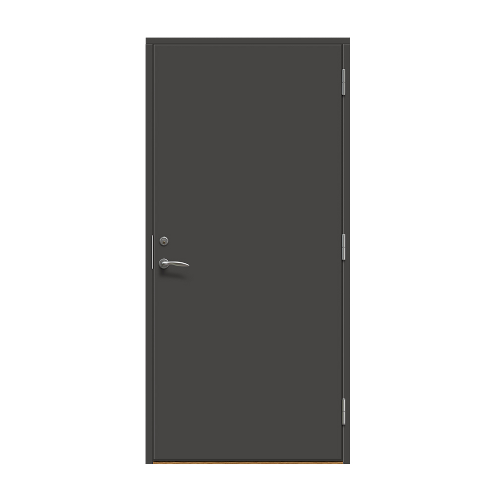 Branndør som hindrer brannspredning i 30 minutter, samtidig som den demper støy utenfra. Den har et glatt ytre som gir et moderne utseende.