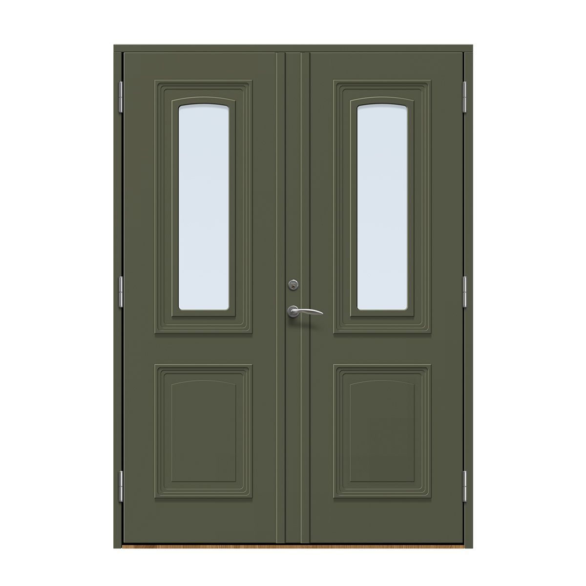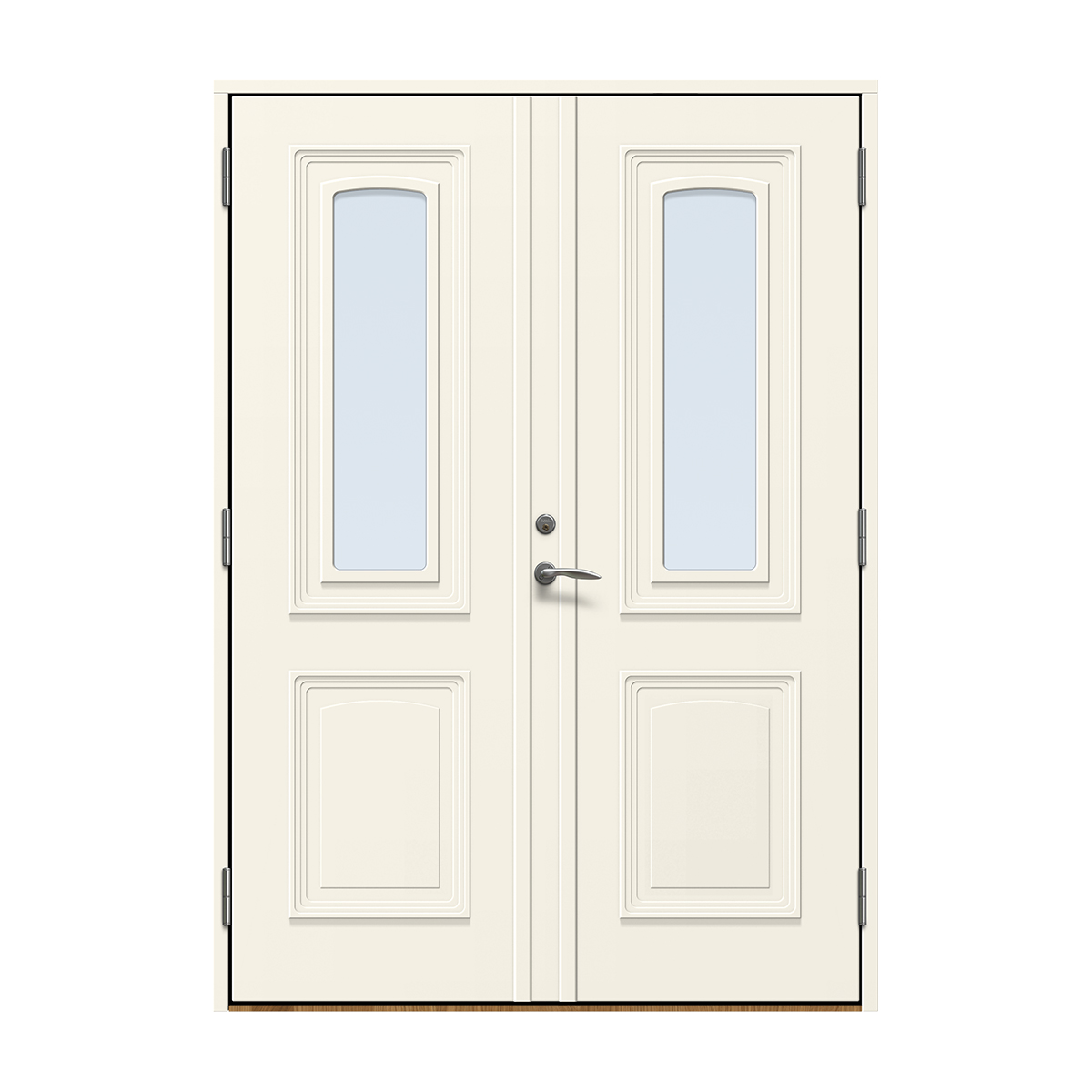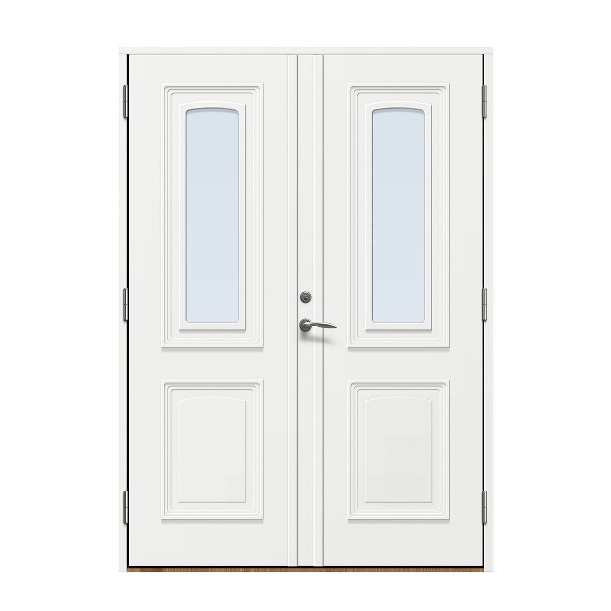Rånæs er en vakker, svært klassisk pardør med vinduer. Klassisk dekor på utsiden og glatt innside.