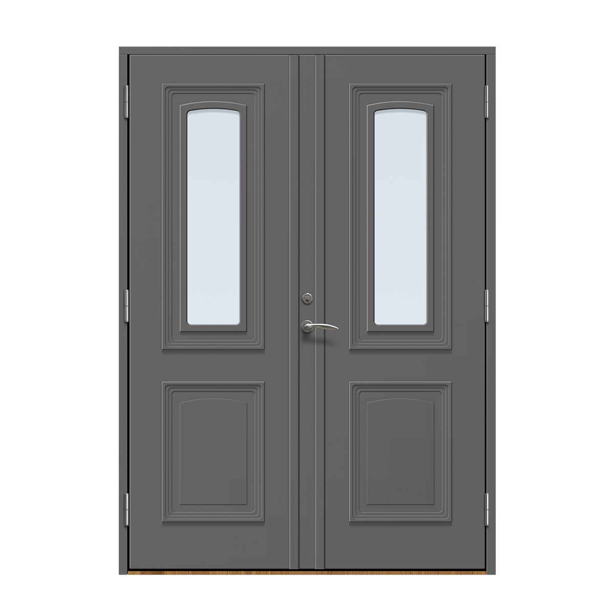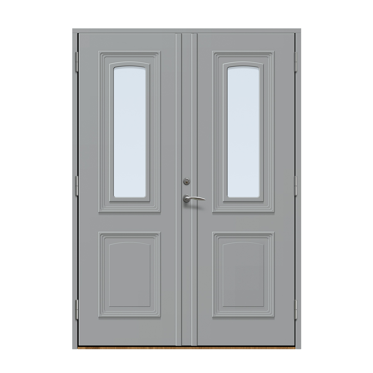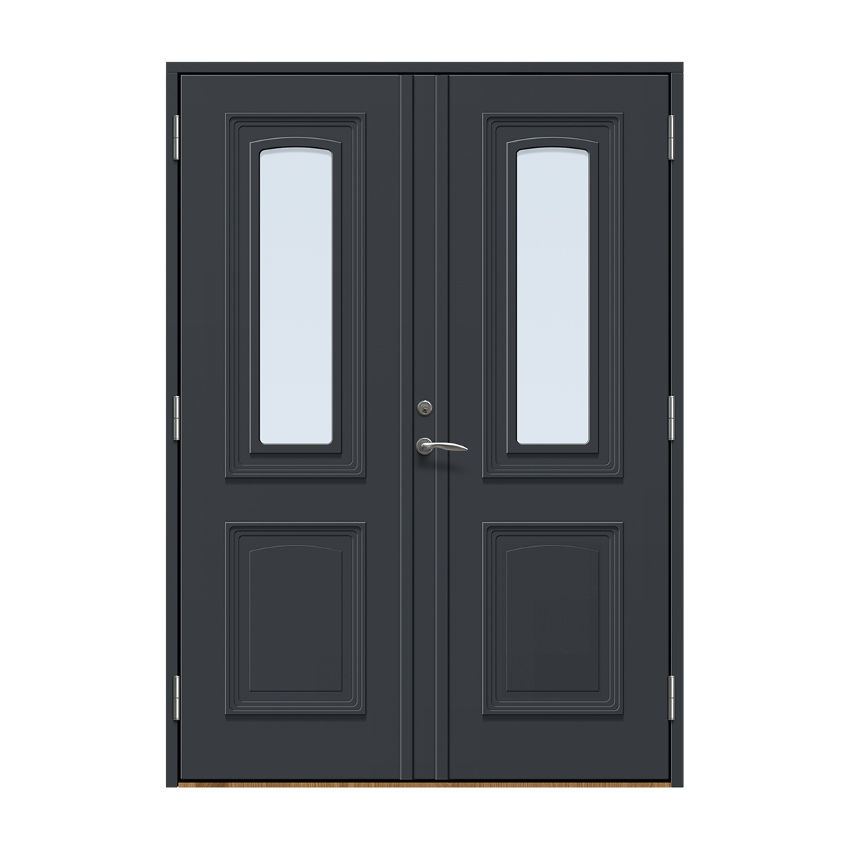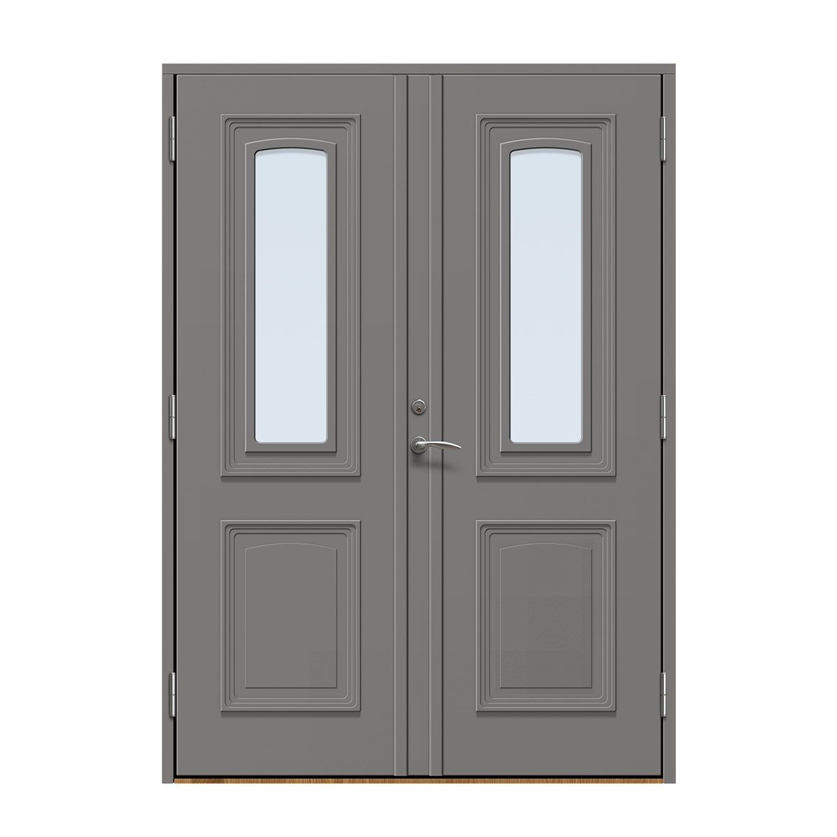 Rånæs er en vakker, svært klassisk pardør med vinduer. Klassisk dekor på utsiden og glatt innside.