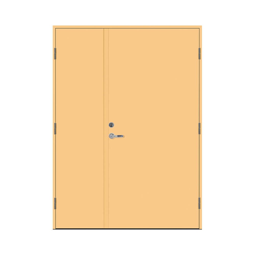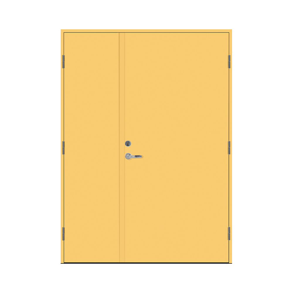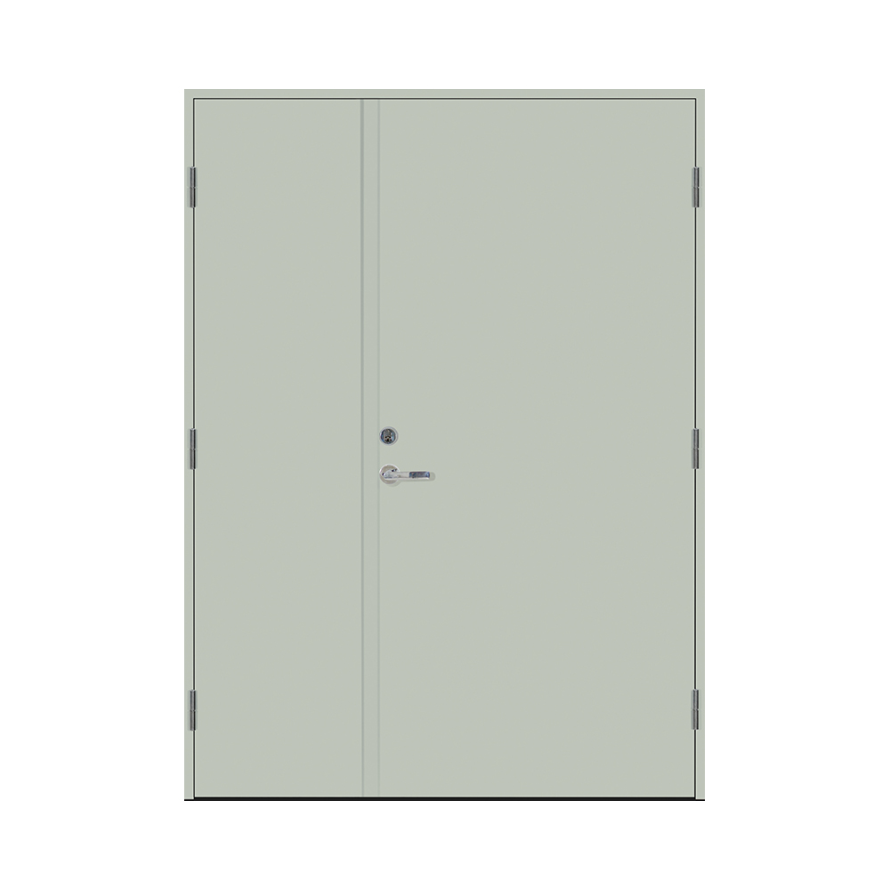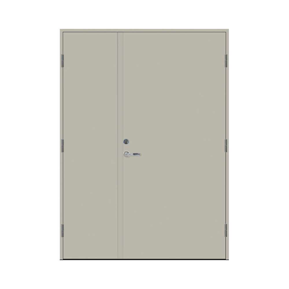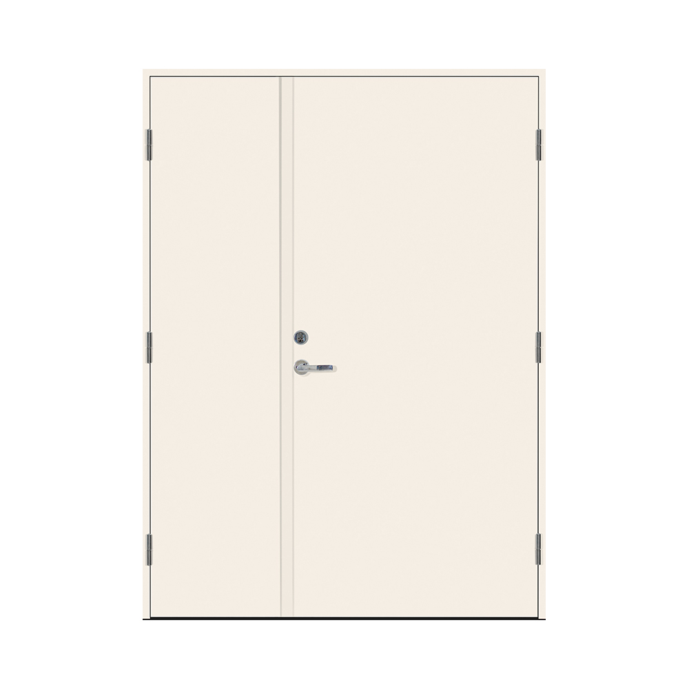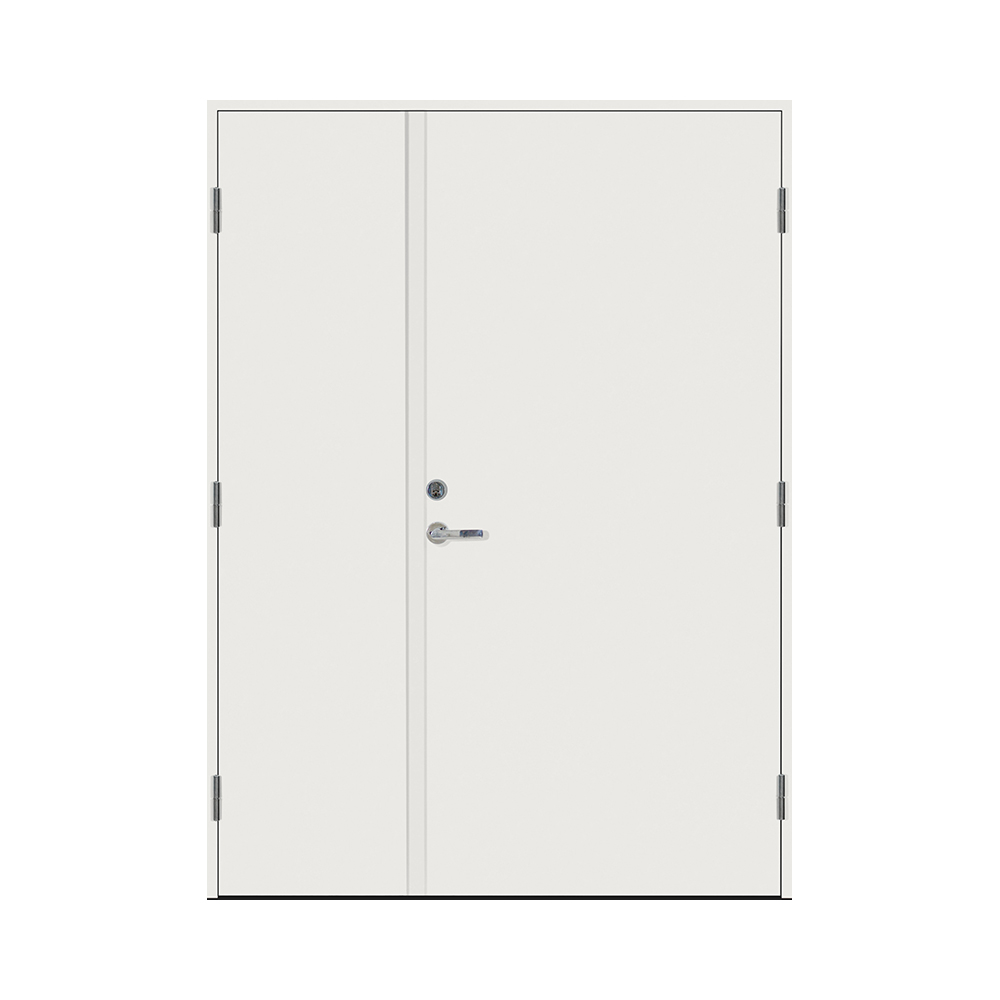 Dørbladet har en glatt innside, er 64 mm tykk og har 55 mm isolering, samt to aluminiumplater som beskytter den indre konstruksjonen.