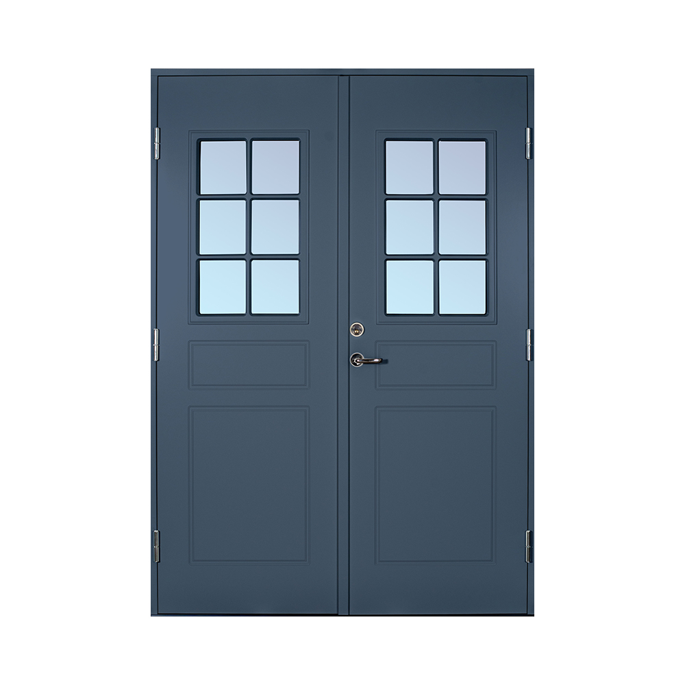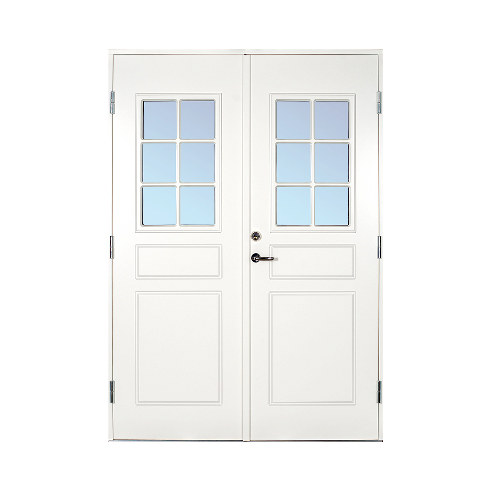Dørbladet har en glatt innside, er 64 mm tykk og har 55 mm isolering, samt to aluminiumplater som beskytter den indre konstruksjonen.