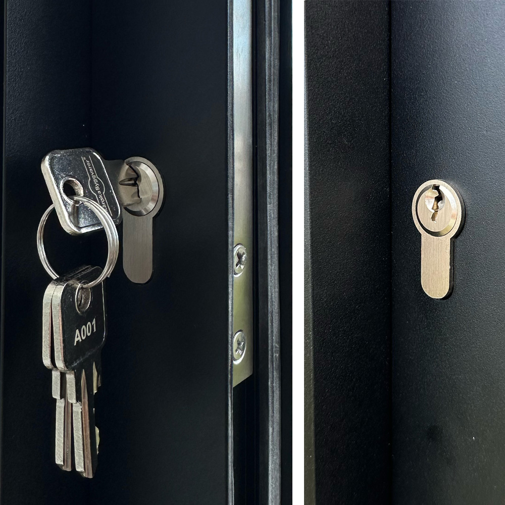 Sylinderen er en euro-sylinder, og med lik låsing kan du bruke samme nøkkel til alle partier. Enkelt og smidig. Tre nøkler per sylinder følger med.