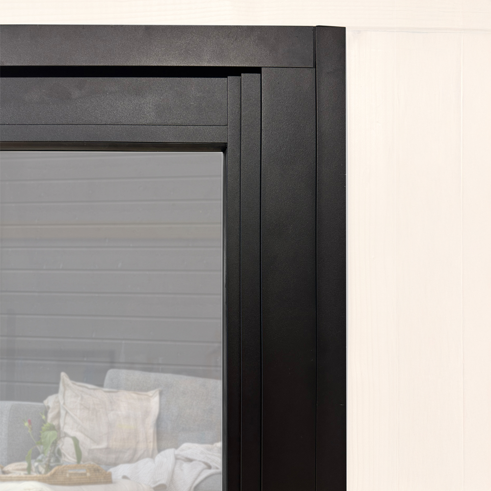 Kjøp med vannbrett som monteres over partiet for å lede bort regnvann. Vannbrettet forhindrer at vann renner ned langs veggen og tilbake inn i hagestuen. Det gjør også at foringene passer pent sammen med karmen med et stilig og praktisk resultat.