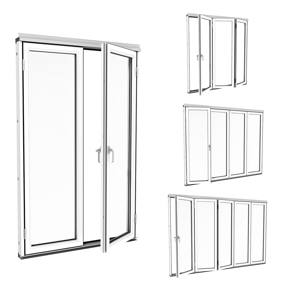 Foldedørene er 199 cm høye og finnes i bredder fra 128 cm opptil 383 cm. Avhengig av valgt bredde får du 2, 3, 4 eller 5 dørblad. Velg mellom fargene hvit og antrasittgrå. Innsiden er alltid hvitmalt tre.