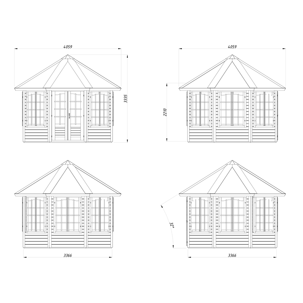 Lysthus i gran. Ubehandlet og må grunnes og males før bruk. Leveres i byggesett som du selv monterer med hjelp av monteringsanvisninger.