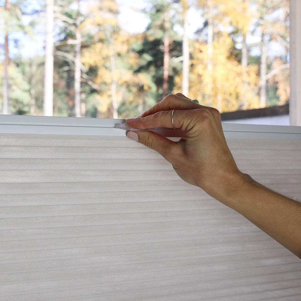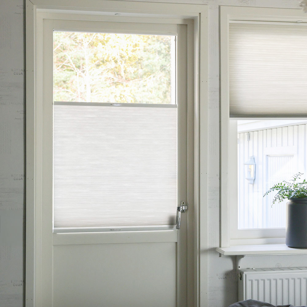 Det flexhengte plisségardinet kan manøvreres fra to sider. Den kan dras ovenfra og ned, så vel som nedenfra og opp. Du velger dermed helt selv hvor du vil begrense innsynet eller lyset. Gardinet kan flyttes fritt langs styrelinene på sidene.